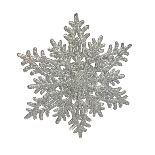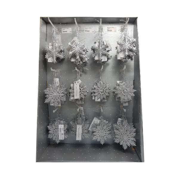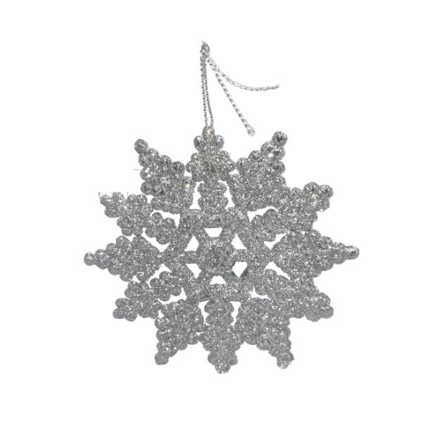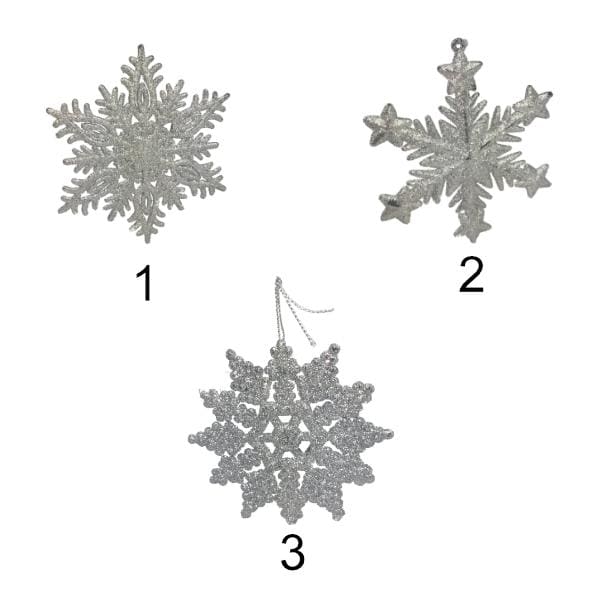 Ozdoba w kolorze srebrnym brokatowym, dostępnym w 3 wzorach o średnicy ok. 10cm.