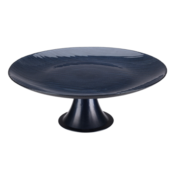 Piękna granatowa, szklana patera na nodze.